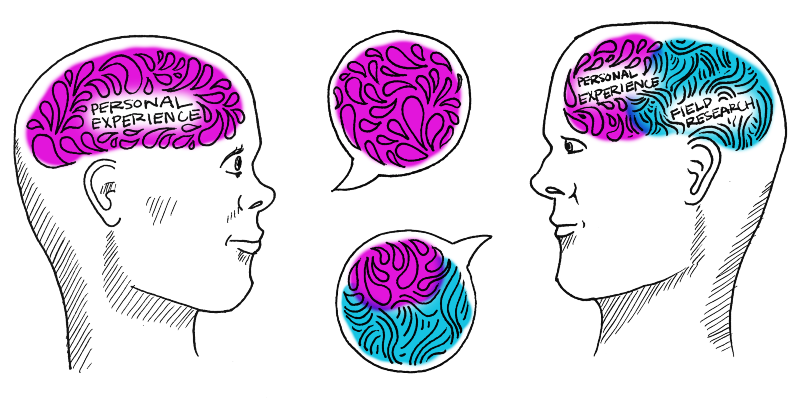Similarly, going through the experience of field research, of seeing end users struggle to achieve their goals, of hearing the kind of language they choose and the stories they tell, of getting to know them as actual human beings and not bullet points on a research report, all of this changes your brain. It changes your brain in a very useful way. It makes your brain better at making design decisions for those end users because it brings into play your social animal skills of empathy and compassion. A brain that has gone through that experience is a very valuable brain, indeed. And there is no other way to modify the brain than through experience.