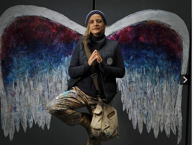 Artist Colette Miller has always embraced her creative energy, from making puppets and putting on plays as a kid, , to training as a painter in college, to writing poetry and songs as a musician in Virginia, New York, and South Africa. She was inspired to create her angel wing paintings while driving on the LA freeway, and thinking about what she would want to see from there. Colette's wings now span the globe, sharing her message that "we can be the good of this earth and we can be the angels of this earth."