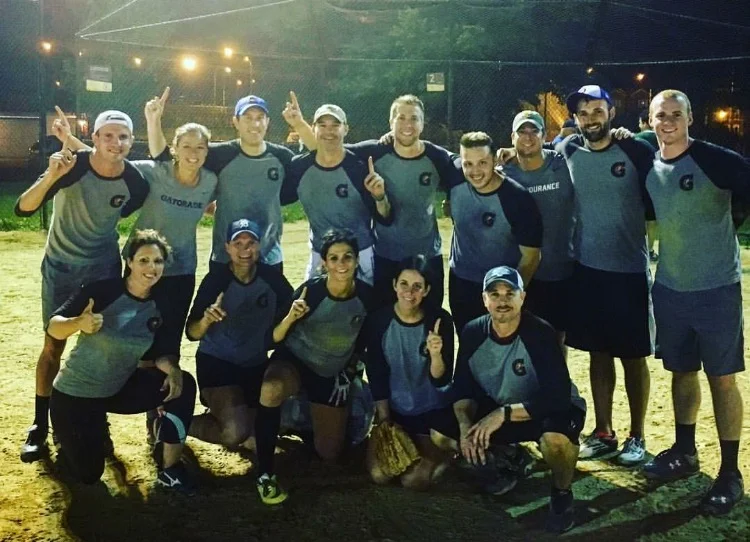 Keri, front and center, runs Gatorade's softball team, in addition to playing on two flag football teams, a basketball team, and a dodgeball team.