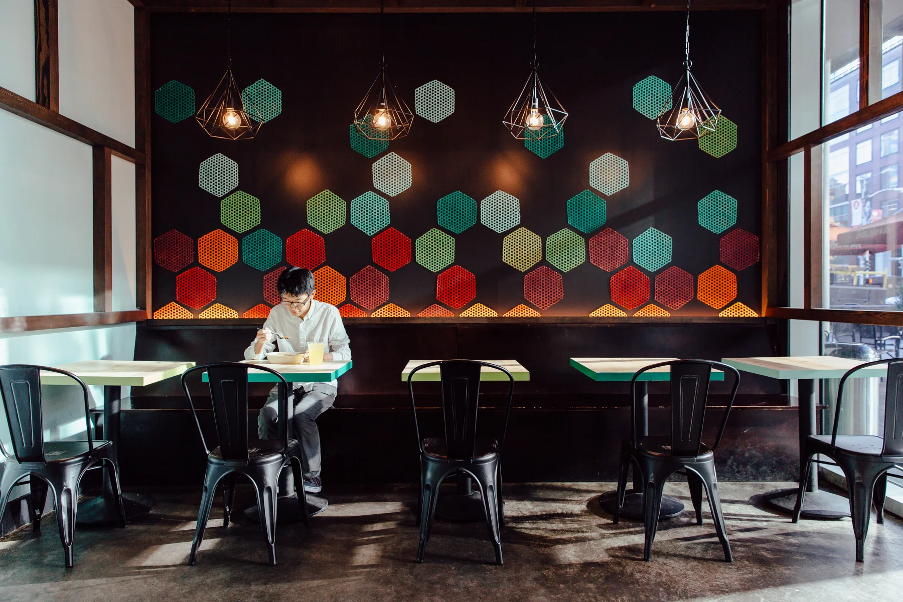 For Spice Kit, a San Francisco restaurant, Atelier Cho Thompson provided Architecture, Branding/Graphics, Signage, and Interior Design services, helping the restaurant's owners define their voice and brand.