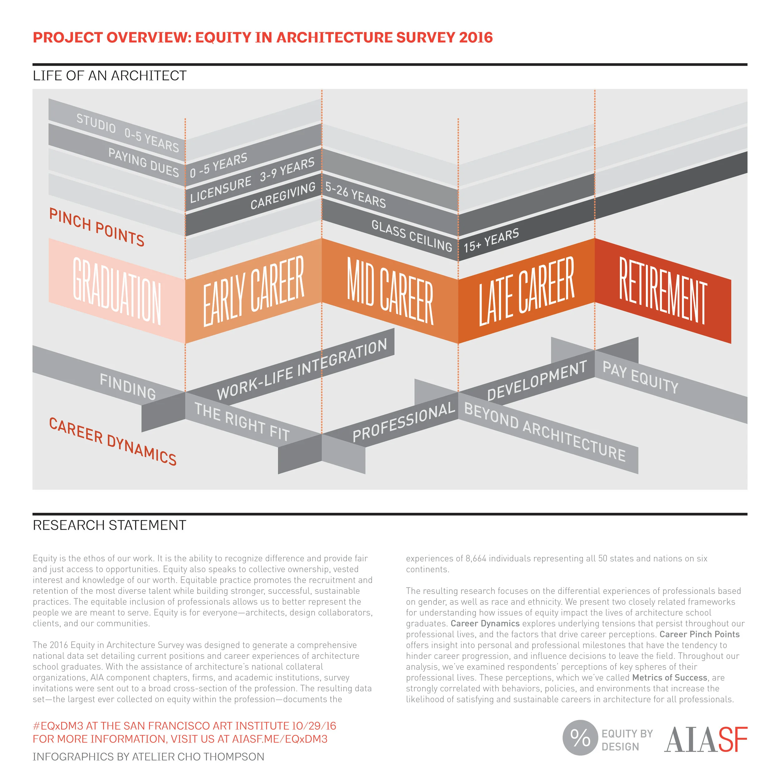 Some projects focus only on design. Atelier Cho Thompson took data collected Equity by Design, a San Francisco-based advocacy group, on equity in architectural practice and turned it into rich and compelling graphics and infographics.